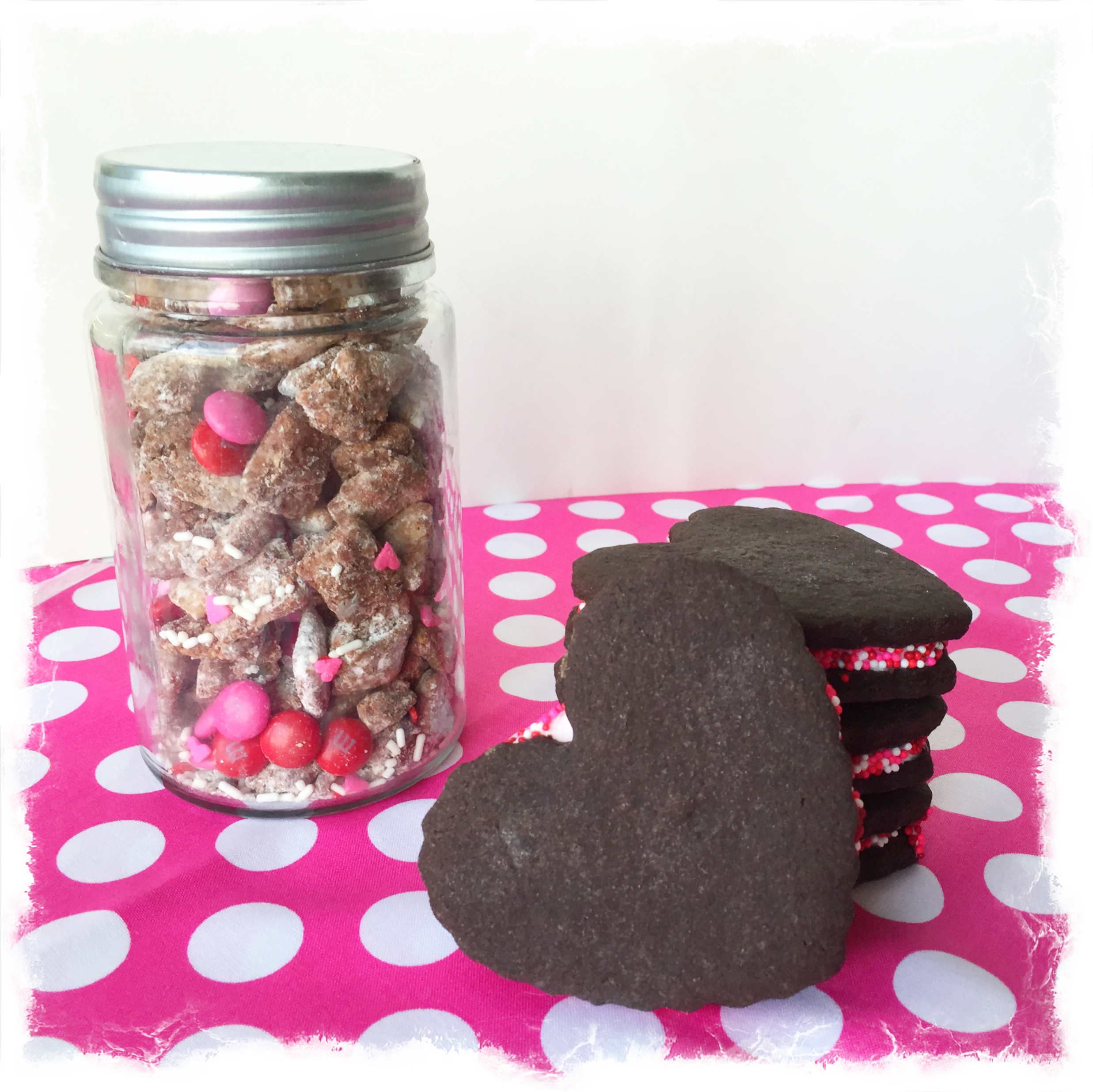 This Valentine’s I am declaring it to be a holiday where I will celebrate those I appreciate and love with tokens of my affections. No, this is NOT a Fifty Shades of Grey super sexy holiday for me. It is more like a day where I can show those around me that I love them. Frankly, the “grey” version scares the tar out of me and I would just rather bake some cookies! These recipes are simple to make and are also perfect to bag up and share! My kids even commented that the sandwich cookies tasted like homemade oreos! That was quite compliment…since I am a lover of Oreos! Get in the kitchen and share your love this Valentines Day!